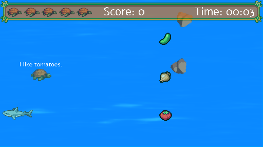 Move the turtle to give it what it likes! Watch out for sharks!